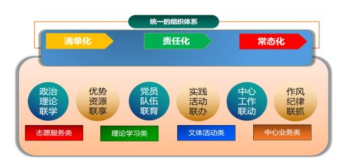 打造“四個(gè)功能分類(lèi)”。為聯(lián)盟活動(dòng)更有目標(biāo)和方向,著力在黨建工作與中心工作深度融合、互促共贏上下功夫,對(duì)聯(lián)盟日?;顒?dòng)做了四個(gè)分類(lèi):志愿服務(wù)活動(dòng)類(lèi),理論學(xué)習(xí)類(lèi),文體活動(dòng)類(lèi)、中心業(yè)務(wù)工作類(lèi)。各基層支部根據(jù)自己的需要主動(dòng)發(fā)起活動(dòng)邀約、積極參與應(yīng)約。