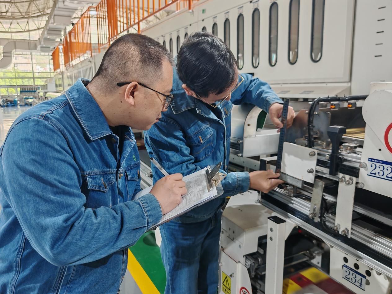 桂林煙草工作人員檢查細(xì)木標(biāo)分揀線包裝機(廖倓書 攝)
