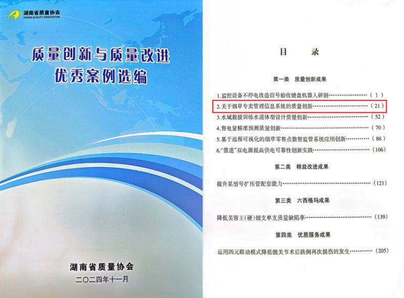 ——?jiǎng)?chuàng)新成果花開(kāi)一線。《市(縣)級(jí)煙草商業(yè)企業(yè)現(xiàn)代化煙草市場(chǎng)治理體系創(chuàng)建與應(yīng)用》課題,全面創(chuàng)建實(shí)施“六大體系”,研發(fā)應(yīng)用“四大工具箱”,有效提升市場(chǎng)綜合治理水平,榮獲湖南省企業(yè)管理現(xiàn)代化成果二等獎(jiǎng)。《關(guān)于煙草專賣管理信息系統(tǒng)的質(zhì)量創(chuàng)新》課題,通過(guò)輕應(yīng)用開(kāi)發(fā)集成“智慧專賣”工具,有效縮短專賣文書(shū)、報(bào)表制作耗時(shí),榮獲湖南省第五屆質(zhì)量創(chuàng)新與質(zhì)量改進(jìn)成果一等獎(jiǎng),并入選優(yōu)秀案例選編。這些從基層土壤中生長(zhǎng)出的成果,實(shí)實(shí)在在減輕了一線工作負(fù)擔(dān),提升了基層工作效率。