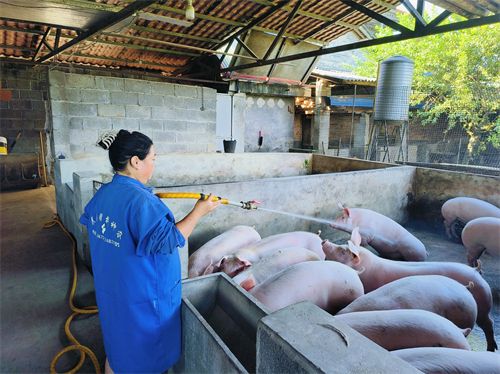 初秋的清晨,伴隨著“咕嚕咕?!钡男∝i哼哼聲和“嘩啦嘩啦”的沖水聲,養(yǎng)豬人尹祖滿在沖洗豬舍中開啟了她的一天,每天給小豬喂食、打掃,從不間斷。