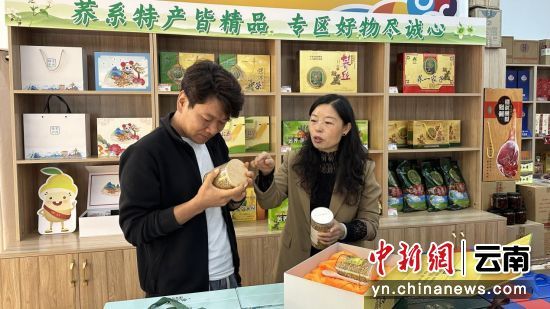 作為瀘西最具代表性的特產(chǎn),蕎系列產(chǎn)品專柜在店中格外顯眼,順著專柜往前走,油雞樅、甜白酒、油淋干巴、蜂蜜等特產(chǎn)依次有序陳列?!翱蛻艚?jīng)理建議我用蕎產(chǎn)品引流,效果確實可以,其他特產(chǎn)有時候就跟著蕎系列一起順帶賣出去了?!睆埡榉艺f。