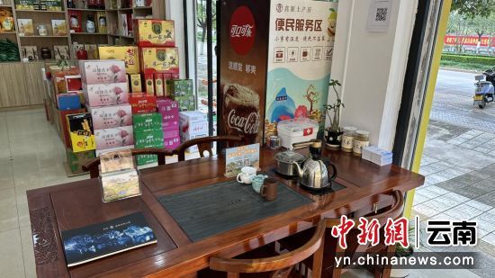 在客戶經(jīng)理的建議下,張洪芬在店內(nèi)增設(shè)了便民服務(wù)區(qū),對每一位進店的消費者,張洪芬都會熱情地請他們喝茶,如果是外地的游客,她還會主動向客戶介紹瀘西的旅游景點、特色美食,并穿插著介紹各種特產(chǎn)背后的文化與民俗。在輕松愉快的氣氛中,消費者往往又會多帶走幾件土特產(chǎn)。