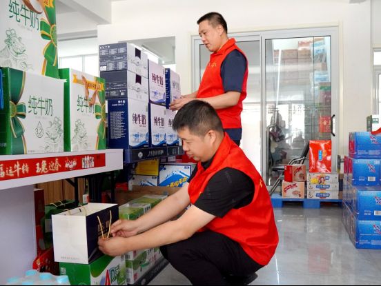圖為志愿者幫助零售戶優(yōu)化商品陳列布局