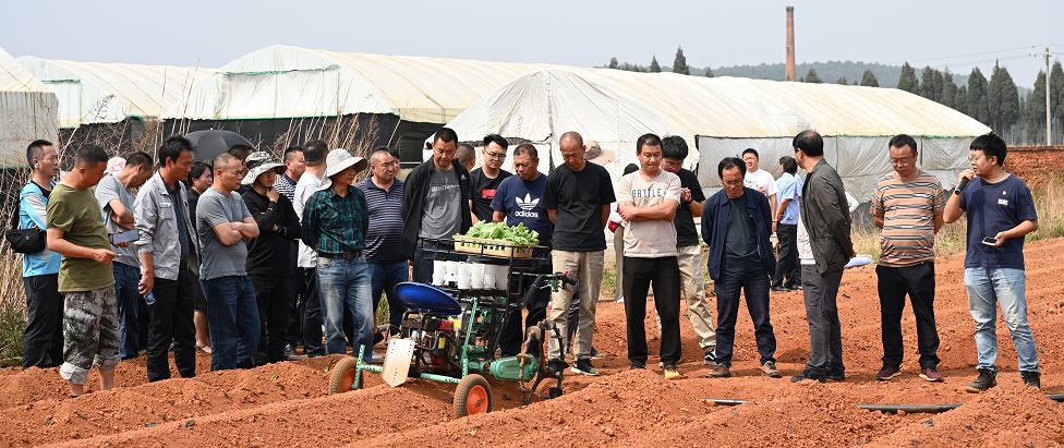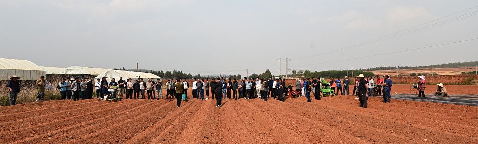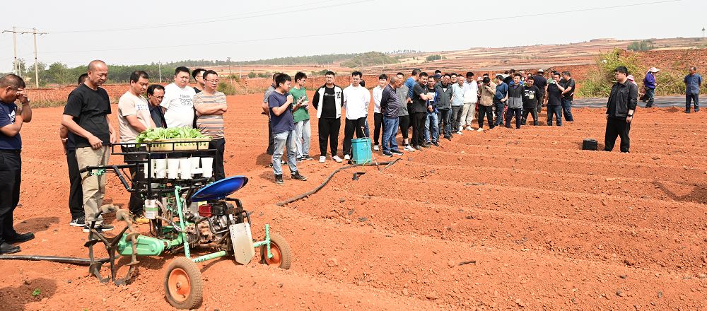 與會人員來到彩云鎮(zhèn)小矣則大田現(xiàn)場,觀摩了云南民創(chuàng)公司與山東火絨公司聯(lián)合生產(chǎn)的打塘移栽澆水多功能移栽機(jī)和昆明理工大研發(fā)的自走式煙苗打塘移栽機(jī)現(xiàn)場作業(yè)情況,聽取了廠家關(guān)于移栽機(jī)情況介紹,并針對機(jī)械移栽作業(yè)進(jìn)行了現(xiàn)場交流。師宗縣煙草專賣局(分公司)基礎(chǔ)辦副主任谷松林就穩(wěn)固煙葉基礎(chǔ)、提升煙葉質(zhì)量、農(nóng)機(jī)農(nóng)藝融合等情況作介紹,觀摩重點(diǎn)環(huán)節(jié)先進(jìn)農(nóng)機(jī)現(xiàn)場作業(yè),彩云煙葉站站長徐昆就水肥一體化及標(biāo)準(zhǔn)化生產(chǎn)作經(jīng)驗(yàn)交流,副經(jīng)理張本亞就現(xiàn)場觀摩進(jìn)行總結(jié)發(fā)言。與會人員圍繞煙農(nóng)職業(yè)化、耕作機(jī)械化、服務(wù)專業(yè)化、管理信息化等內(nèi)容進(jìn)行研究與探討。