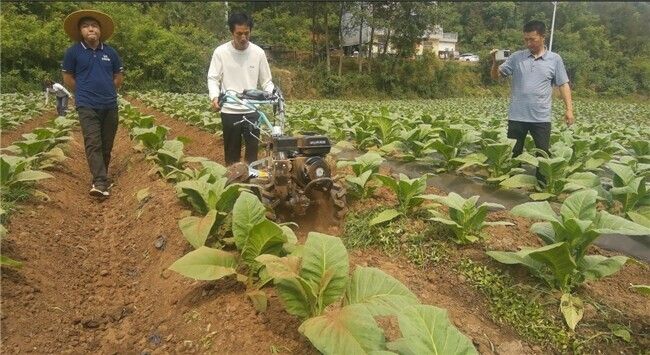 走進(jìn)官渡鎮(zhèn)蒲溪村后灣生產(chǎn)示范區(qū),煙農(nóng)尹本清今天中午剛從快遞點(diǎn)取回來一件龐然大物,這可把附近煙農(nóng)招來了,他們都想一睹這個(gè)龐然大物到底有何威力。憑借著從小對(duì)機(jī)械的強(qiáng)大興趣,不一會(huì)便將微耕機(jī)安裝完畢,一切準(zhǔn)備就緒,微耕機(jī)下地。只見他推著機(jī)器一點(diǎn)都不費(fèi)力,雜草在機(jī)器的碾壓下全部清理干凈,而且翻耕的距離恰好控制在兩壟之間,同時(shí)微耕機(jī)的重量只有20kg,一個(gè)人便能輕松駕馭,這可把前來觀看的煙農(nóng)高興壞了,都像撿到寶貝似的。據(jù)了解,人工除草一天最多兩畝地,有時(shí)碰到土壤板結(jié)、陡坡地段,一天能清理1畝便很不錯(cuò),而這款微耕機(jī)一天輕松清理7、8畝,大大提高了勞作效率。當(dāng)天下午,蒲溪片區(qū)就又有三戶煙農(nóng)購買機(jī)器,大家紛紛為微耕機(jī)點(diǎn)贊。