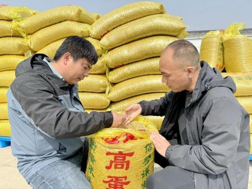 圖為煙葉生產(chǎn)技術(shù)員查看大豆品質(zhì)