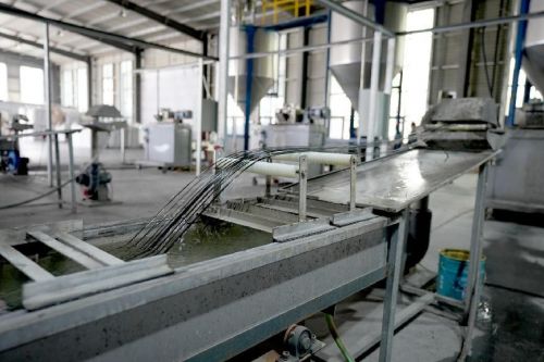 圖為“煙田廢棄物回收再利用中心”廢舊地膜再利用生產(chǎn)線