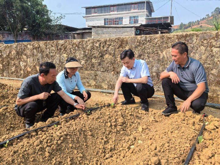 查看節(jié)水滴灌一體化技術推廣情況(譚勇 攝)