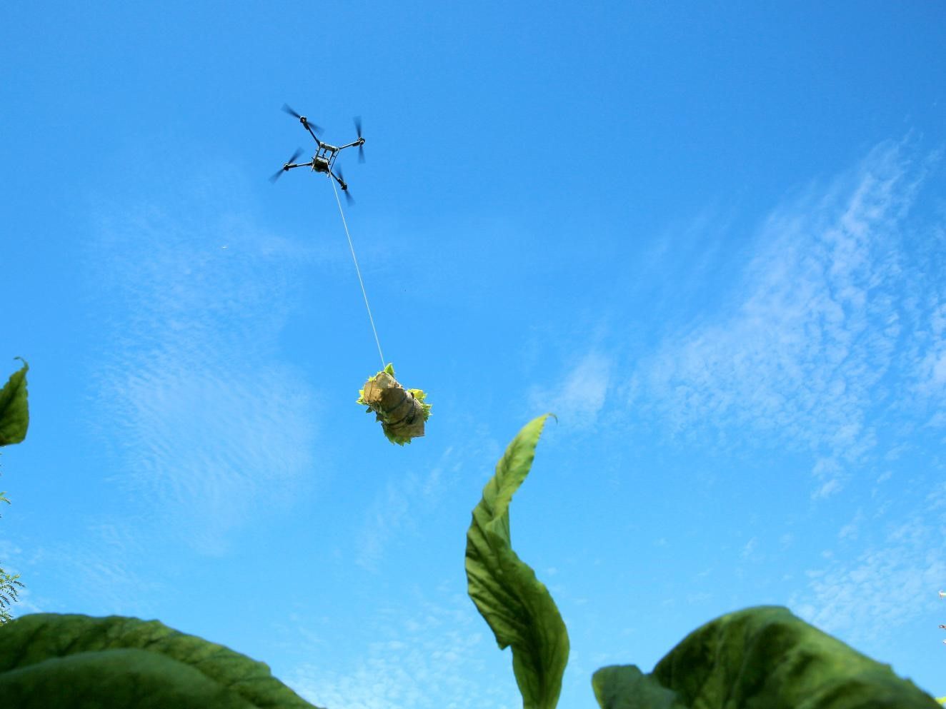 無(wú)人機(jī)吊運(yùn)煙葉。李偉攝
