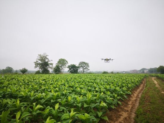 圖為:瑞金煙區(qū)利用無(wú)人機(jī)開展煙葉病蟲害防治