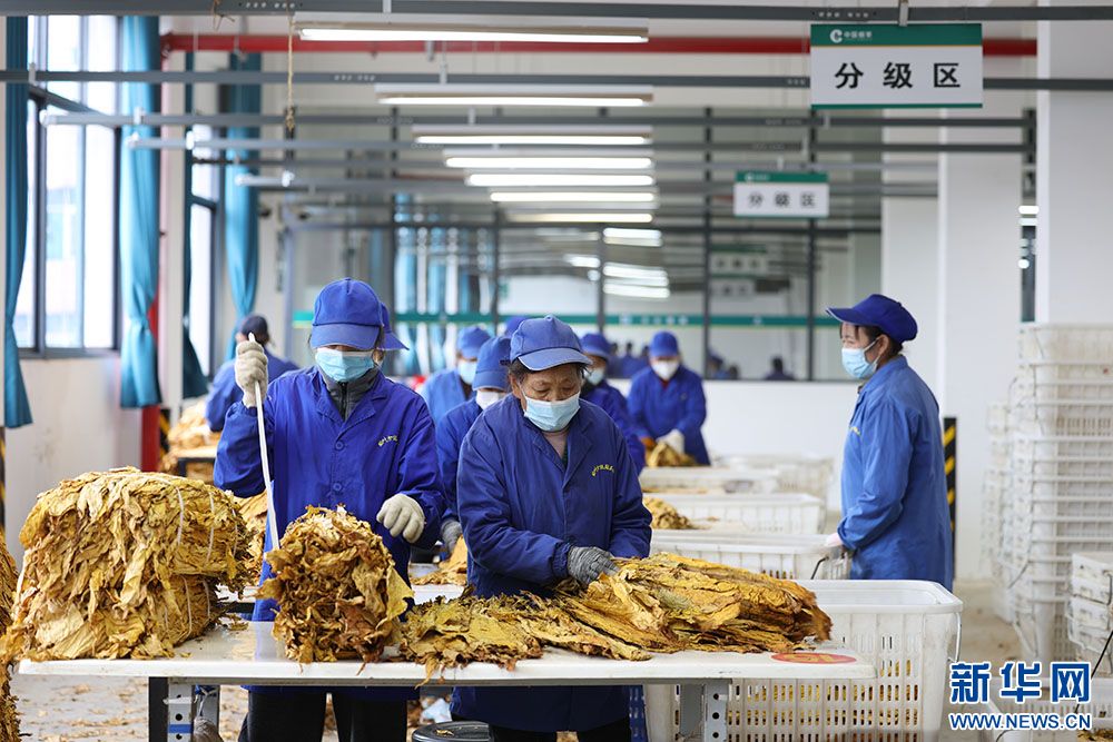 圖為巴東縣茶店子鎮(zhèn)煙站工作人員對(duì)煙葉進(jìn)行分揀、評(píng)級(jí)。新華網(wǎng)發(fā)