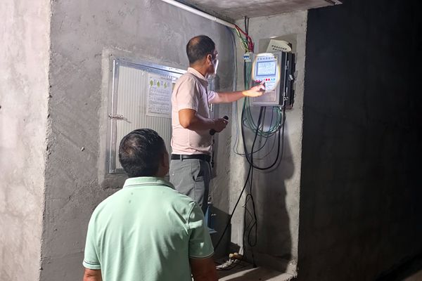 煙技員正在檢查烤房控制儀。楊紹基攝