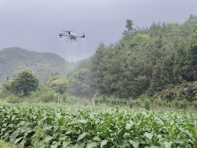 在煙田防治病蟲害的關(guān)鍵時(shí)期,一場別開生面的“無人機(jī)植?,F(xiàn)場觀摩會(huì)”在南丹縣芒場鎮(zhèn)巴平村的煙田里舉行。 只見操作手熟練操控遙控器,無人機(jī)騰空而起,在煙田上空精準(zhǔn)地往返穿梭,均勻地灑下霧化藥液。 短短十幾分鐘,就完成了人工需要忙碌大半天的作業(yè)量。
