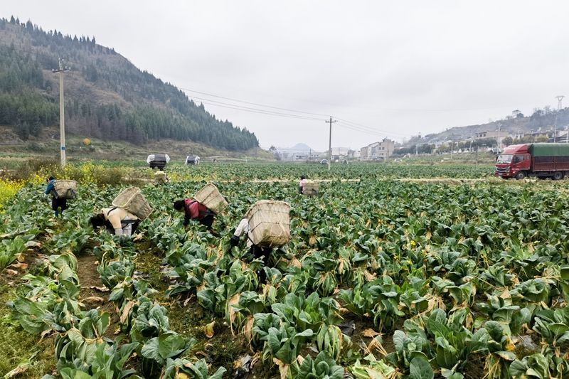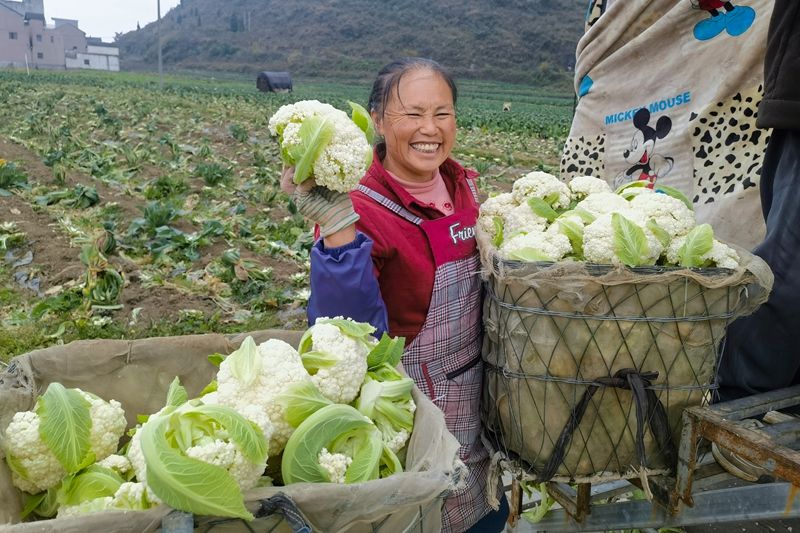 清晨,薄霧還未散盡,貴州貞豐縣北盤江鎮(zhèn)青杠林村的1300畝壩區(qū)里,花菜迎來了豐收季,工人們手腳麻利、分工明確,有條不紊地進(jìn)行著采摘、挑揀、分類、裝車,熱火朝天勞動的景象,讓冬日的壩區(qū)暖意融融。