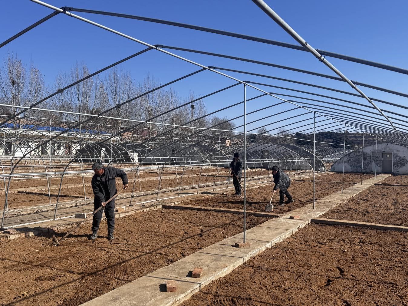 育苗大棚地基整理。蔡李霖?cái)z
