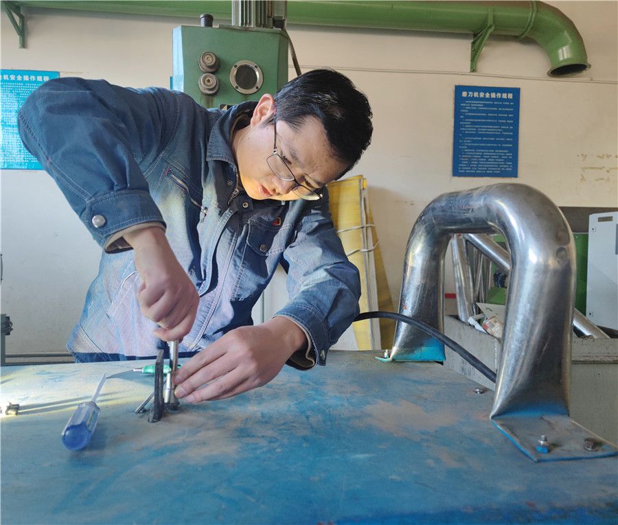 浦仕旭正在對設備進行維修(1月23日攝)。蘇雪梅 攝