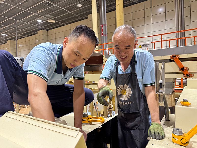 剛給設備做完開機前保養(yǎng),陶忠成沾著機油的手還沒來得及擦,徒弟小丁就遞來一塊干凈的大布。前幾年,小丁退伍進廠跟著陶忠成學技術,同樣的軍旅經歷,讓師徒倆之間有種不用多說的默契。