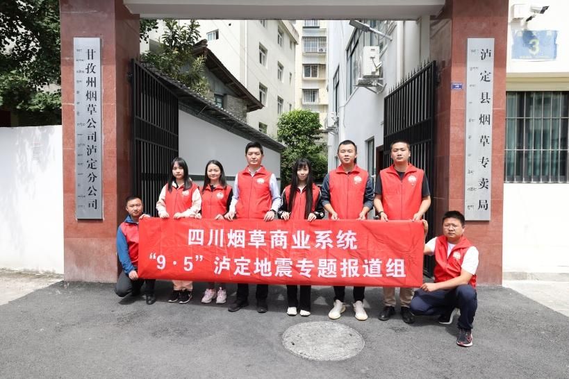 劉景(右四)與“9·5”瀘定地震專題報(bào)道組團(tuán)隊(duì)合影。