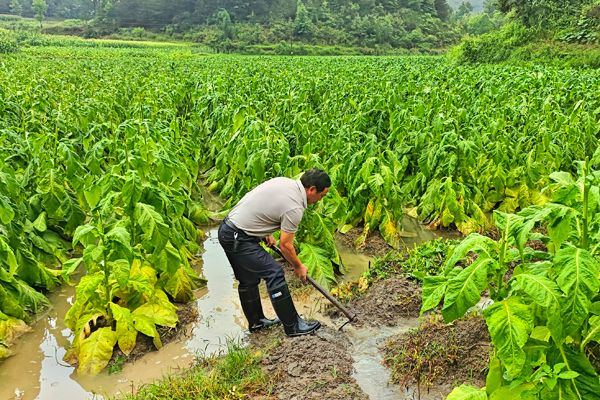 黃家海幫助煙農疏通被淹的煙田。黃朝江攝