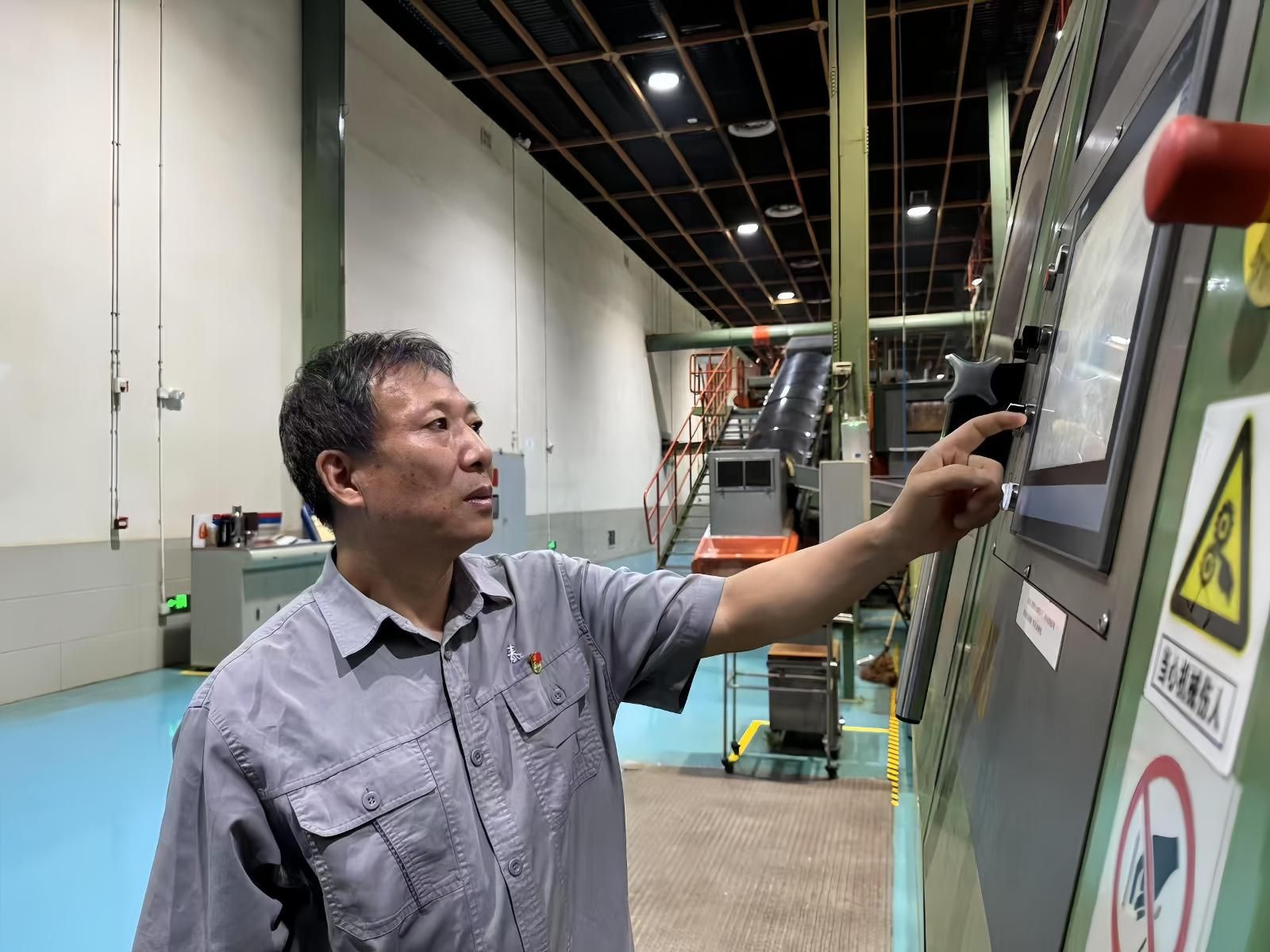 劉波在查看設(shè)備運(yùn)行參數(shù)。