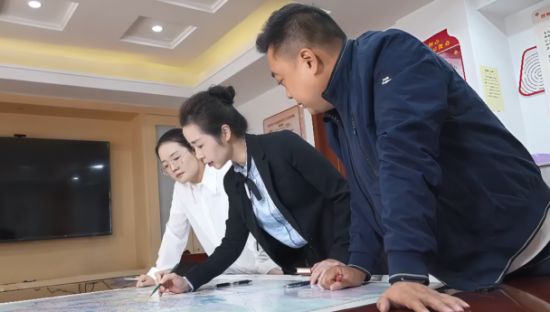 圖為南昌市西湖區(qū)煙草局局長(zhǎng)(經(jīng)理)李琳(中)在與專賣人員一起劃分轄區(qū)行政區(qū)域服務(wù)分布圖。
