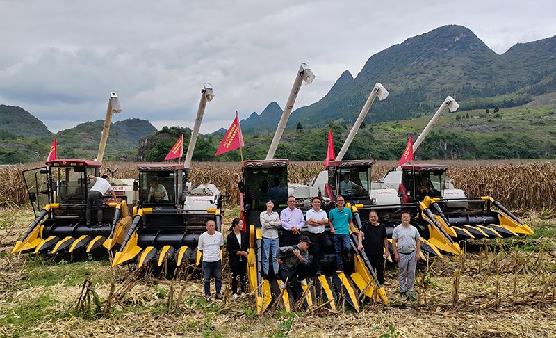 合作社收割機(jī)整裝待發(fā)的作業(yè)現(xiàn)場(chǎng)。