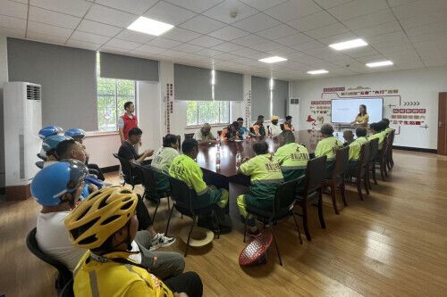圖為戶外勞動(dòng)者專題心理減壓課堂授課現(xiàn)場(chǎng)