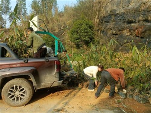 圖為村民搬運即將栽種的麻竹。莫可 攝