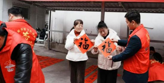 活動現(xiàn)場,黨員志愿者與專業(yè)理發(fā)師默契配合,有序為社區(qū)老人、困難群眾提供免費理發(fā)服務(wù)。志愿者耐心詢問居民的發(fā)型需求,理發(fā)師細(xì)致修剪,不時與居民拉家常、聊年俗,現(xiàn)場氛圍溫馨熱鬧。同時,另一組志愿者為居民書寫春聯(lián)、福字,筆墨間滿含對新年的美好祝愿,一張張紅火的春聯(lián)、一個個飽滿的“福”字,被居民們開心地捧在手中。