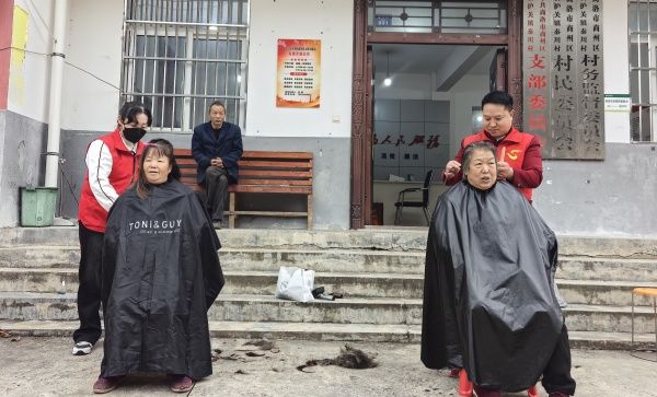 商洛商州煙草志愿者為秦川村老年人義務(wù)理發(fā)。