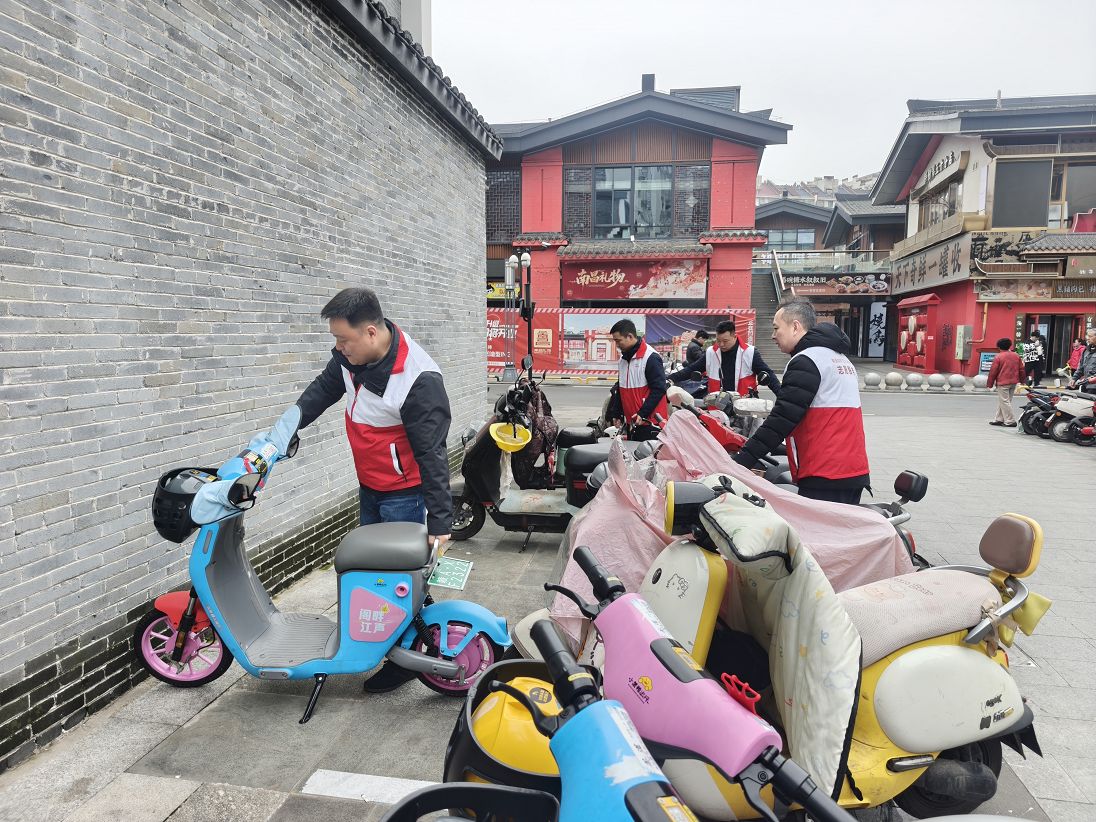 繩金塔景區(qū)作為南昌文旅名片,每逢節(jié)假日人流如織,周邊共享電動(dòng)車(chē)亂停亂放、占用盲道和消防通道等問(wèn)題時(shí)有發(fā)生,不僅影響市容市貌,更給市民出行帶來(lái)安全隱患。針對(duì)這一“城市痛點(diǎn)”,西湖區(qū)煙草局志愿服務(wù)隊(duì)提前謀劃、精準(zhǔn)施策,將活動(dòng)區(qū)域劃分為景區(qū)廣場(chǎng)、主次干道、地鐵口三個(gè)重點(diǎn)片區(qū),實(shí)行“分片包干、責(zé)任到人”的工作機(jī)制。活動(dòng)現(xiàn)場(chǎng),志愿者們身著紅白相間的志愿馬甲,化身“城市秩序維護(hù)者”。他們或彎腰扶起倒地的車(chē)輛,或合力將擠占人行道的電動(dòng)車(chē)挪移至指定停車(chē)線內(nèi),或?qū)Σ灰?guī)范停放的車(chē)主進(jìn)行文明勸導(dǎo)?!耙郧斑@里的電動(dòng)車(chē)經(jīng)常堵得水泄不通,現(xiàn)在路寬了,心情也舒暢了?!闭诰皡^(qū)散步的居民對(duì)志愿者的行動(dòng)連連點(diǎn)贊。