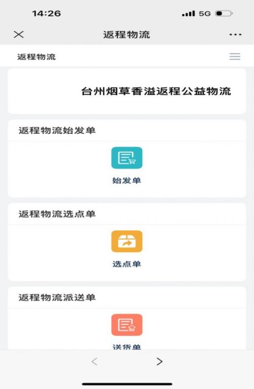 圖為返程物流小程序界面