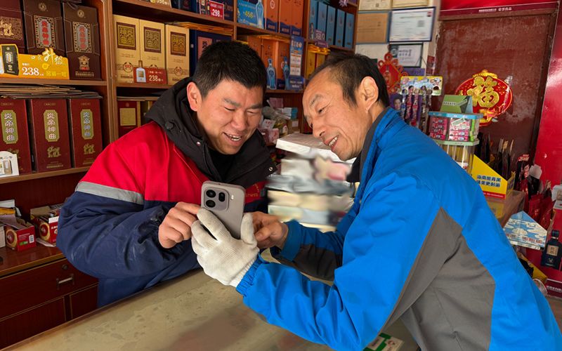 送貨員現(xiàn)場指導(dǎo)零售戶盤點(diǎn)商品。