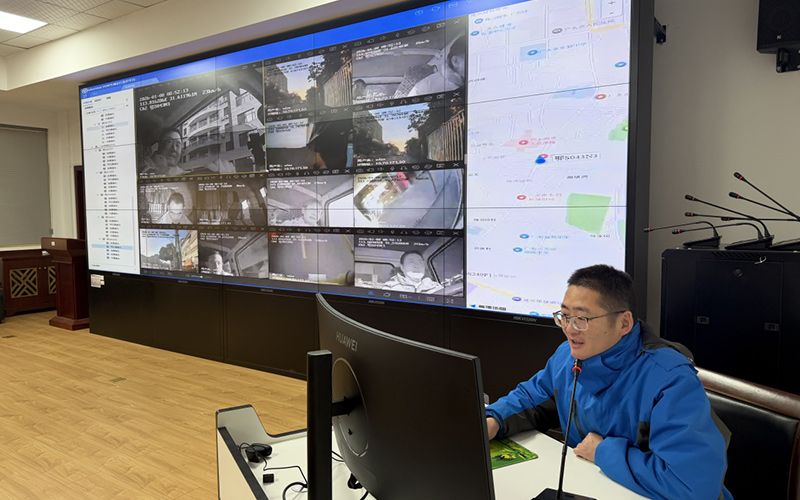 “姜師傅,前方有積水路段易打滑,提前降速?!卑踩珕T李恒盯著屏幕實(shí)時(shí)提醒著駕駛司機(jī)。