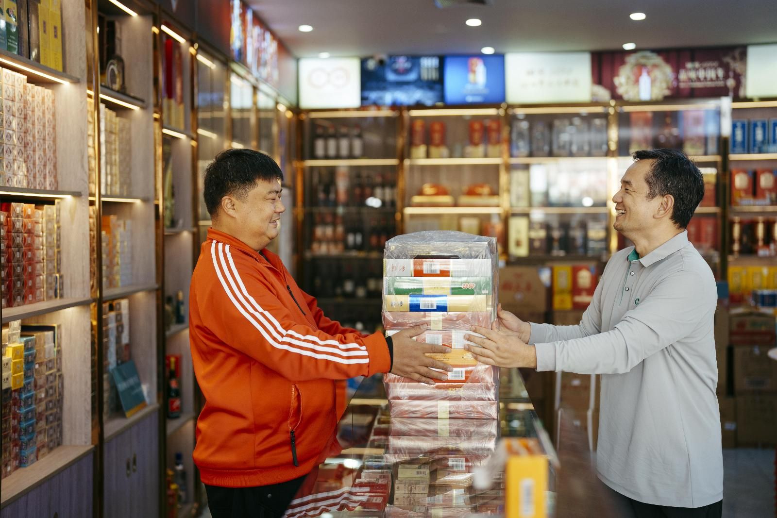 為更好地服務(wù)零售戶,保障商品順利交接,2026年1月起,廣東省中山市煙草專賣局(公司)為零售戶提供卷煙暫存服務(wù),待零售戶可取貨時提供第一時間送達(dá)服務(wù)。圖為近日送貨員(右)為零售戶補(bǔ)送暫存的卷煙。