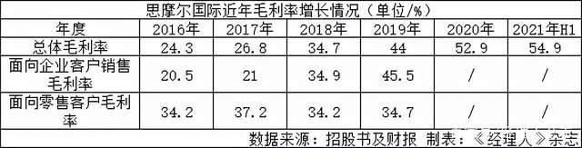 對(duì)于思摩爾國(guó)際而言,其在電子煙產(chǎn)業(yè)鏈中話語(yǔ)權(quán)較強(qiáng)。Wind數(shù)據(jù)顯示,2021年H1電子煙板塊的毛利率約30.5%,而同期思摩爾國(guó)際的毛利率為54.9%,兩者毛利率相差逾24%。