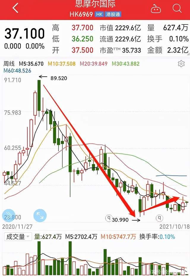雖然思摩爾國(guó)際的業(yè)績(jī)保持快速增長(zhǎng)態(tài)勢(shì),但其今年的股價(jià)卻遭遇投資者用腳投票。具體來(lái)看,思摩爾國(guó)際的股價(jià)在1月份達(dá)到最高點(diǎn)89.52元/股之后,開(kāi)始了長(zhǎng)時(shí)間的下跌,最低點(diǎn)為30.99元/股,跌幅逾65%。截至10月18日,思摩爾國(guó)際的收盤(pán)價(jià)為37.1元/股,較最高點(diǎn)仍跌幅近60%,市值約2227億元。
