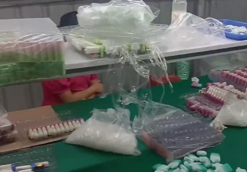 9月2日8時(shí)許,常寧市公安局接到市煙草局反映在蓬塘鄉(xiāng)田尾附近有人非法生產(chǎn)假冒注冊(cè)商標(biāo)的電子煙,該局立即組織蓬塘派出所、柏坊派出所聯(lián)合市煙草局、市市場(chǎng)監(jiān)督管理局共出動(dòng)50余名工作人員趕赴與蓬塘鄉(xiāng)田尾交界的案發(fā)地柏坊鎮(zhèn)議泉村,快速查獲一處生產(chǎn)假冒某品牌電子煙的作坊,當(dāng)場(chǎng)查獲大量假冒的電子煙成品、半成品及生產(chǎn)設(shè)備,抓獲犯罪嫌疑人李某榮、劉某。