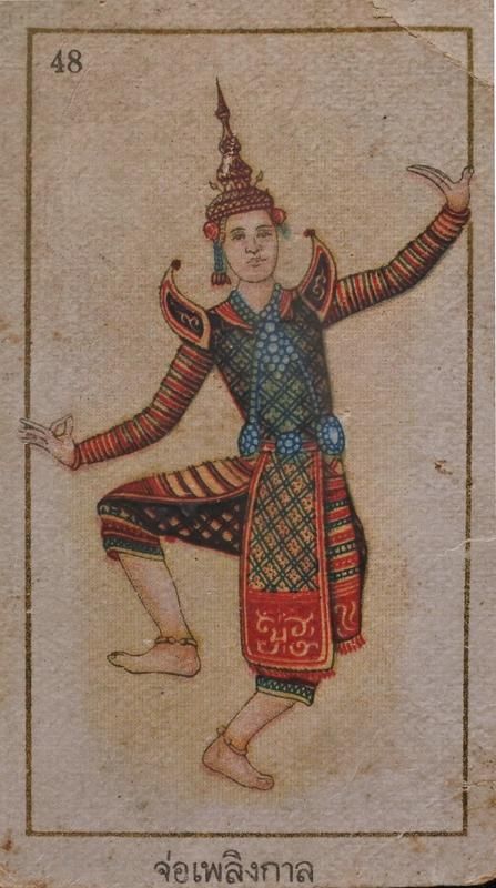 泰國位于亞洲東南部,當(dāng)?shù)厝诵撵`手巧、能歌善舞。泰國傳統(tǒng)舞蹈舞姿優(yōu)美,具有民族特色。泰國傳統(tǒng)舞蹈分古典舞和民族舞兩種,其中古典舞是一種十分復(fù)雜的藝術(shù),每個舞步動作都具有特殊含義。古典舞是泰國舞蹈藝術(shù)精華,已有300多年歷史,源于印度南部卡達卡利舞。上世紀(jì)20年代,英美煙公司出品過“泰國舞”煙畫,50枚一套。其中第48枚描繪了一名正在跳泰國舞的舞者身穿華美的服裝,頭戴寶塔型帽子,充滿泰國風(fēng)情。他的身體各關(guān)節(jié)彎曲,形成“三道彎”造型,其優(yōu)美典雅的舞姿生動地表現(xiàn)了泰國舞的特點。