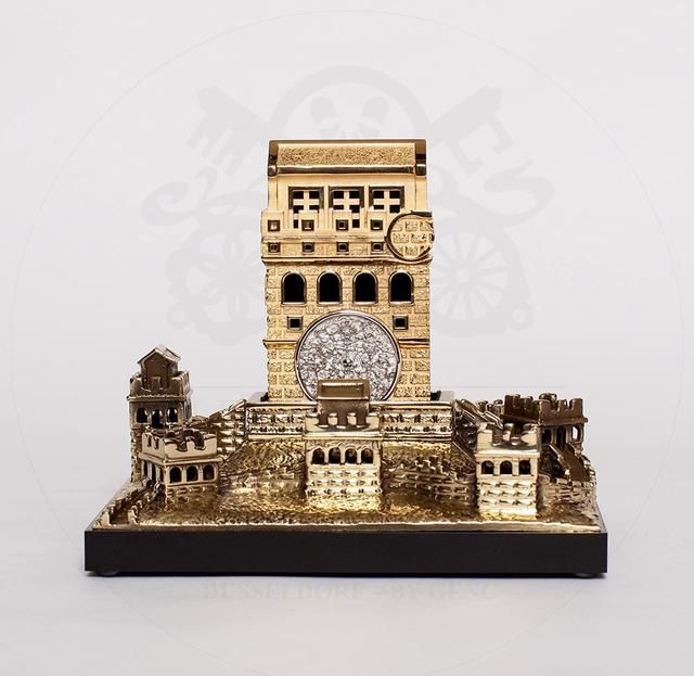 它莊嚴(yán)地坐落在一個(gè)帶有黃金光澤的實(shí)心青銅底座上,它復(fù)制了長城的一部分。代表長城及其瞭望塔的煙灰缸將青銅和黃金光澤的壯麗與黑色的力量結(jié)合在一起大理石。