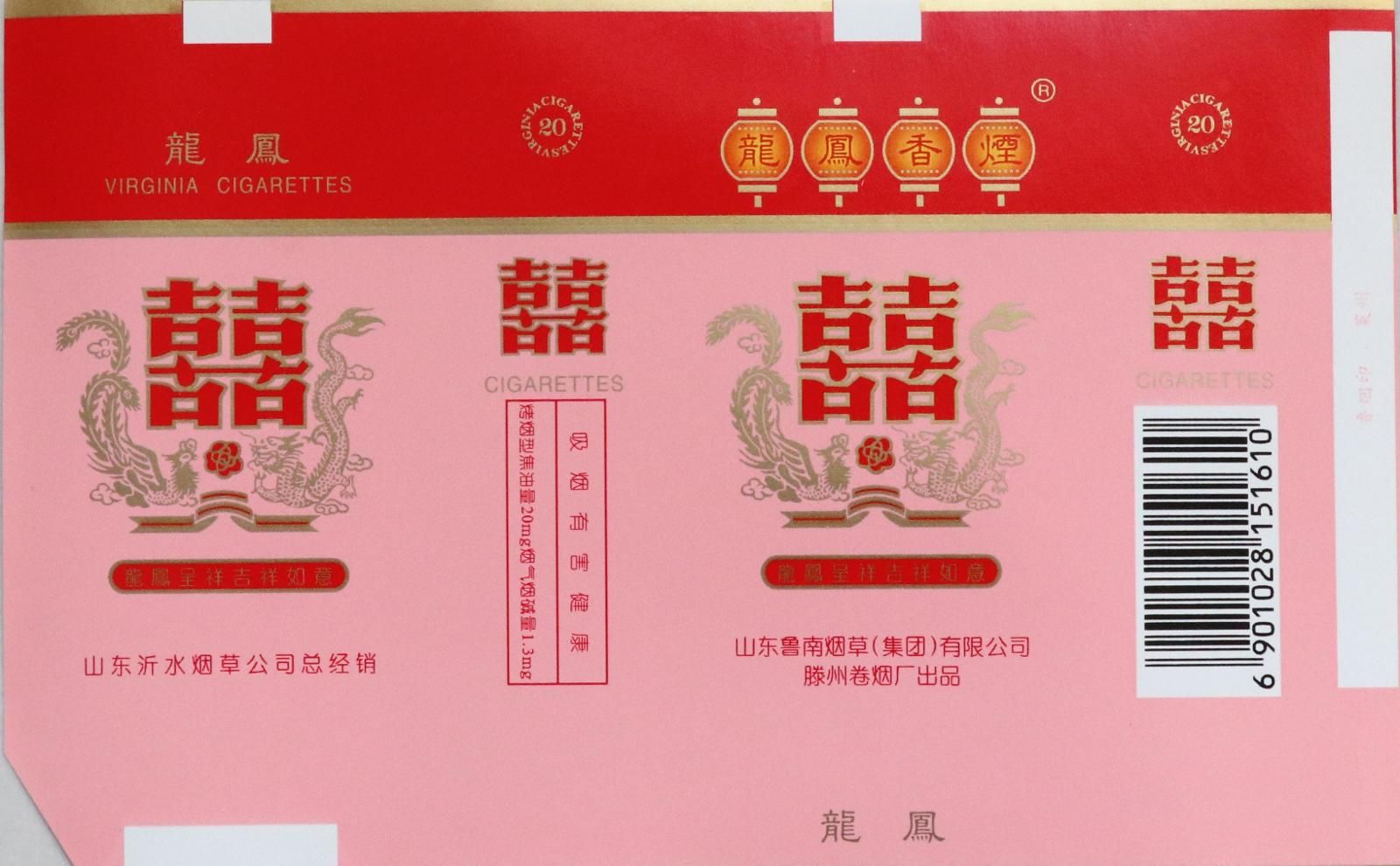 “龍鳳”原為兗州雪茄煙廠的牌號(hào),創(chuàng)牌時(shí)為半葉卷雪茄。1993年6月,兗州雪茄煙廠并入滕州卷煙廠,“龍鳳”牌由滕州卷煙廠承接。1996年,滕州卷煙廠啟用“龍鳳”牌商標(biāo),研發(fā)烤煙型卷煙,其小盒包裝以紅色調(diào)為主,印有龍鳳呈祥圖案和“囍”字,作為婚慶用煙投入市場,廣受消費(fèi)者好評(píng)。