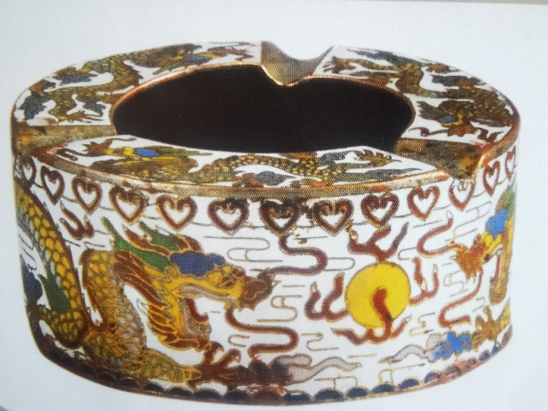 清末民初,景泰藍二龍戲珠煙缸:
