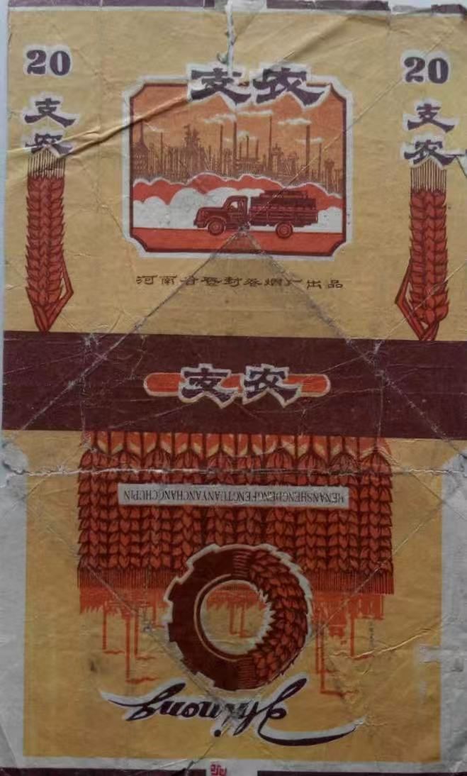 ③20世紀70年代,登封卷煙廠的“支農(nóng)”牌煙標確實很有時代特色,主版是卡車滿載貨物支援農(nóng)村的場景,副版則用稻穗和齒輪組合成糧倉,象征工農(nóng)結(jié)合。這種設(shè)計反映了上世紀六十年代“工業(yè)支援農(nóng)業(yè)”的政策背景,當(dāng)時全國煙廠都推出了類似主題的煙標。