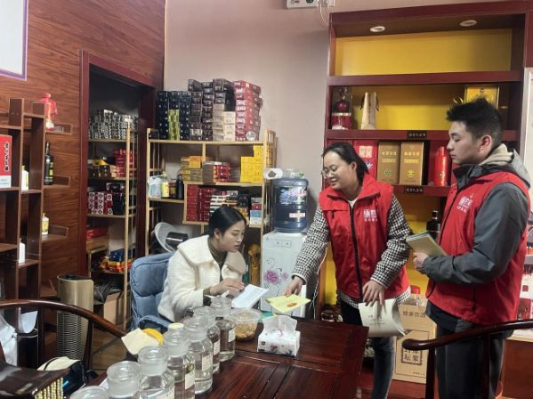 專(zhuān)賣(mài)人員和志愿者向零售客戶(hù)宣傳煙草專(zhuān)賣(mài)法知識(shí)。