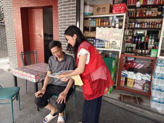 圖為“紅馬甲”志愿服務(wù)隊(duì)的志愿者為零售戶講解辦證流程