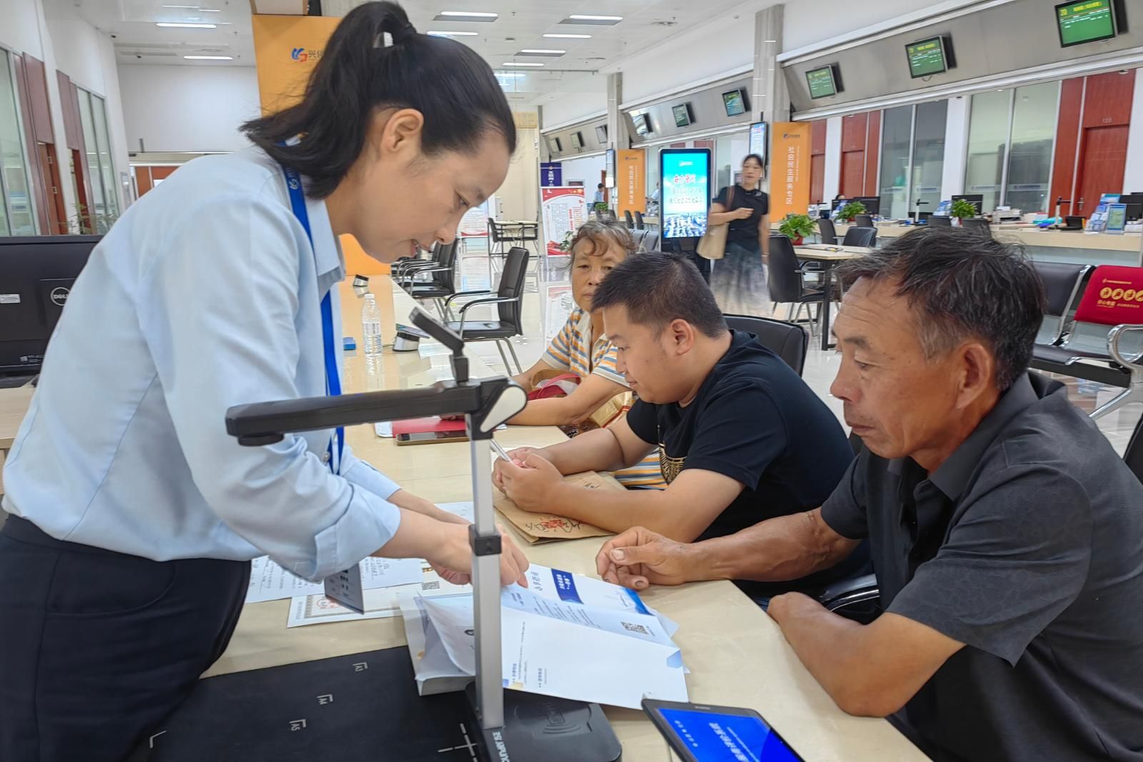 工作人員(左一)在向群眾介紹行政許可服務(wù)相關(guān)事項(xiàng)。