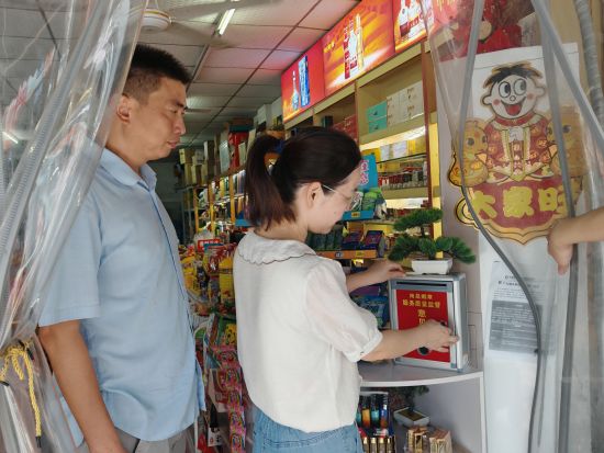 圖為西湖區(qū)煙草局在零售戶監(jiān)督員開啟“服務(wù)質(zhì)量監(jiān)督意見箱”收集意見和建議