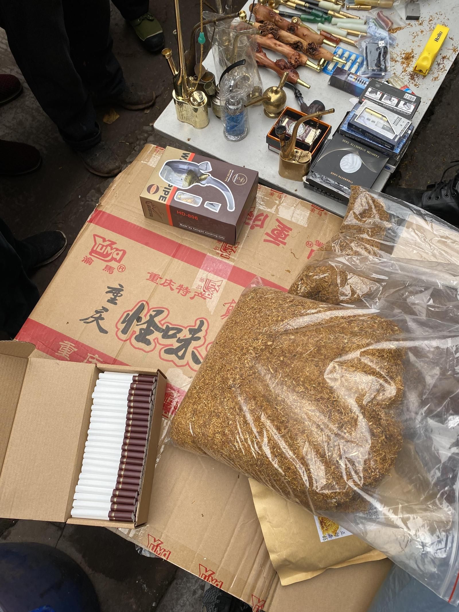 2021年12月14日,屏山縣煙草專賣局稽查人員在轄區(qū)鴨池鄉(xiāng)開展市場檢查時,發(fā)現(xiàn)有人在農(nóng)貿(mào)市場上銷售無品牌的袋裝煙絲和盒裝空管煙,包裝簡陋且來源不明?;槿藛T當(dāng)即依法檢查,現(xiàn)場查獲煙絲4.525公斤、空管煙1847支。