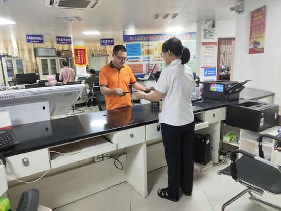 圖為覃英濤開展郵寄送達(dá)許可證交接工作。陳志陽 攝