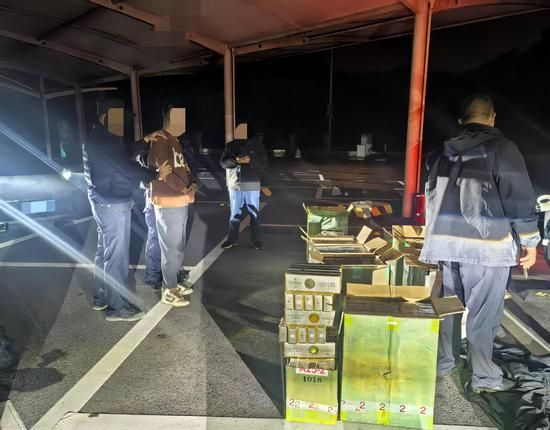 夜色深沉,山風(fēng)微涼。“目標(biāo)車輛沿天巴高速行駛,預(yù)計(jì)1小時(shí)后到達(dá)服務(wù)區(qū),各小組立即前往預(yù)定點(diǎn)位布控!”對(duì)講機(jī)里傳來清晰的指令,在鎖定涉案車輛行駛軌跡后,聯(lián)合執(zhí)法組多點(diǎn)布控、精準(zhǔn)攔截。在服務(wù)區(qū)執(zhí)法人員屏息凝神,緊盯每一輛過往車輛,最終成功攔截目標(biāo)車輛?,F(xiàn)場(chǎng)查獲違法卷煙40余萬支,貨值達(dá)160余萬元,抓獲涉案人員2名,創(chuàng)下河池市煙草專賣局近年來單案查扣量新高。